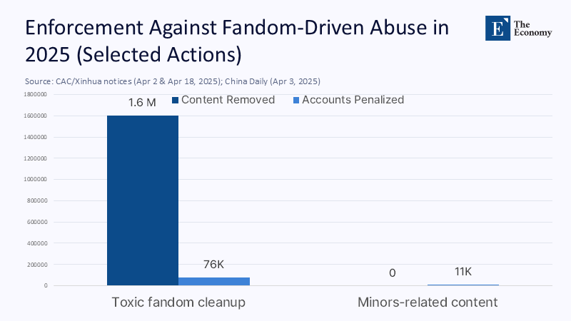 The primary indicator of China’s online cultural dynamics is no longer a simple follower count. As of December 2024, the number of internet users reached 1.108 billion, with 99.3% using social networks and 96.6% consuming online video content. Short-form video, in particular, has emerged as a core medium that rapidly amplifies fandom activity by fostering intense immersion and perceived intimacy within brief time spans. This environment has enabled highly organized fandom behavior and large-scale opinion mobilization, culminating in a 2025 enforcement campaign in which authorities sanctioned 76,000 fandom-related accounts and permanently shut down 3,767 of them. While presented as “communities,” these ecosystems in practice reveal an industrial structure combining rumor production with mass mobilization.