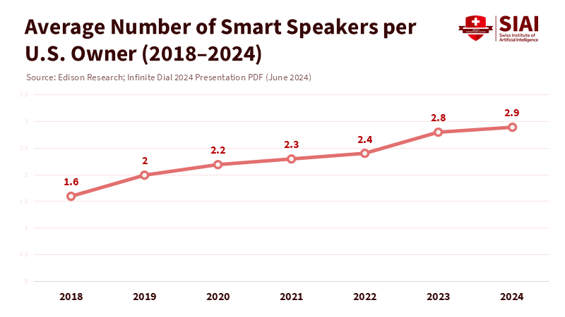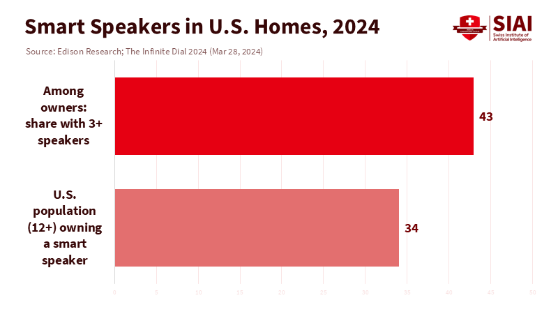 Note: Smart speaker ownership rate among the U.S. population aged 12 and older (34%); share of owners with three or more devices (43%)