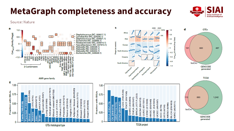 Note: MetaGraph precisely distinguishes antibiotic resistance genes and region-specific sequence patterns, demonstrating higher concordance than existing GENCODE references across GTEx and TCGA datasets