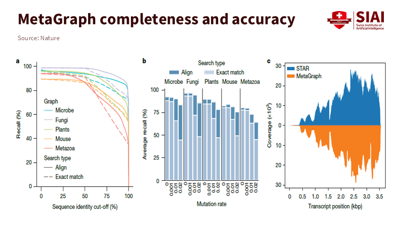 The focus of search technology is shifting from speed toward accuracy. MetaGraph maintains high recall even for sequences with high mutation rates or incomplete data. In human transcriptome analyses, it reconstructed positions and markers without requiring sequence realignment. This capability stems from evaluating the relational structure among datasets rather than isolated matches.